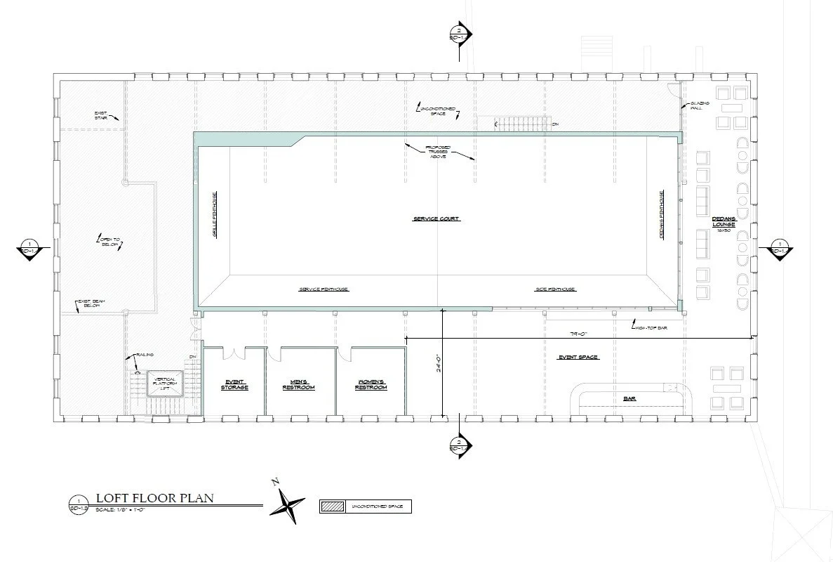 A&B’s Chris Marucci digitally scanned the structure and the surrounding area to produce a Revit Building Information Model (BIM). Utilizing this data and with guidance from Brandywine Court Tennis, A&B’s Project Manager Clark LaMotte drafted the renderings below.